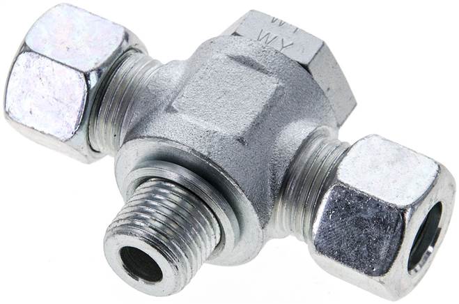 T swivel screw connection M 16x1,5-12 L (M18x1,5), Zinc plated steel