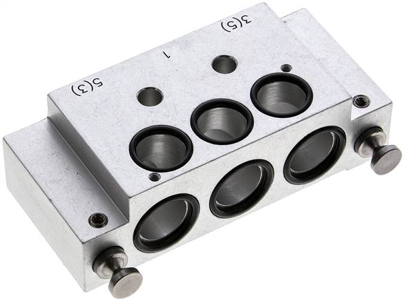Modulares Ventil-Grundplattensystem für die gemischte Montage von Ventilen der Baureihe KM 09 und KM 10 in Schaltfunktionen 5/2- und 5/3-Wege. Die Anzahl der Stationen ist beliebig, bei großen Stationszahlen ist die Zu- und Abluftversorgung zu beachten. Ein nachträgliches Erweitern oder Kürzen ist jederzeit möglich. Die auf dem System RF 19 montierten Ventile können auch als Einzelventile verwendet werden, da alle Anschlüsse Gewinde haben. Bei Grundplattenmontage ist der Druckanschluss 1 und die Entlüftungen 3 und 5 für alle Ventile gemeinsam an den Stirnseiten der Anschlussplatten (G 3/8").
