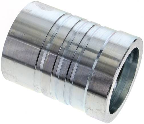 These crimped fittings with tear-off protection are developed specially for the 4 SH-hose. The 4 SH-hose should be skived not only externally but also internally. When compressing, a "metallic bond" is created between the fitting and the hose and this exposes the hose equipped with fittings to the maximum pressure load. The advantage of this combination is, amongst others, the use of a flexible 4-spiral hose or a 4-SH hose instead of a "rigid" 6-spiral hose.