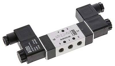 5/3-way solenoid valve, G 1/8", Centre position closed, 12 V DC