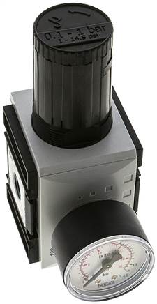 •Spojením více regulátoru do jednoho bloku je možné prostrednictvím jednoho tlakového napájení napájet více okruhu stlaceným vzduchem s nezávisle regulovatelnými tlaky. Výstup stlaceného vzduchu (G 3/8") je umísten naproti manometru.
