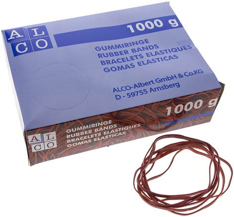 Rubber bands, red, 150 x 4 mm, 1000 g in the carton