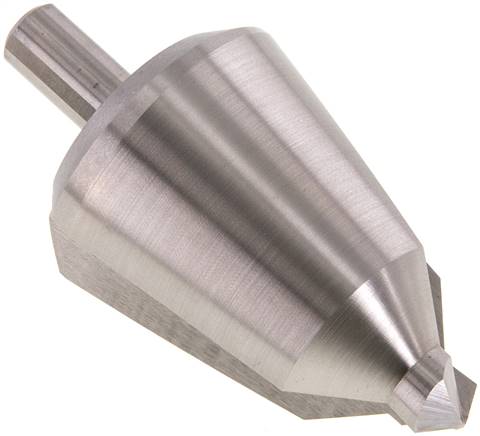 Leistungsstarker, rechtsschneidender Blechschälbohrer / Stufenbohrer mit scharfer Bohrerspitze (Kreuzanschliff nach DIN 1412 C) zum Bohren von Löchern in Bleche bis 4 mm Stärke. Durch die scharfe Bohrerspitze ist es möglich, ohne Vorbohren auch in dünnwandige Materialien zu bohren. Die tiefgeschliffene Spannut (bei Stufenbohrern spiralgenutet) gewährleistet absolute Laufruhe und hohe Schnittleistung. Bei dem Stufenbohrer kann die jeweils nächsthöhere Stufe zum Entgraten der Bohrung verwendet werden.