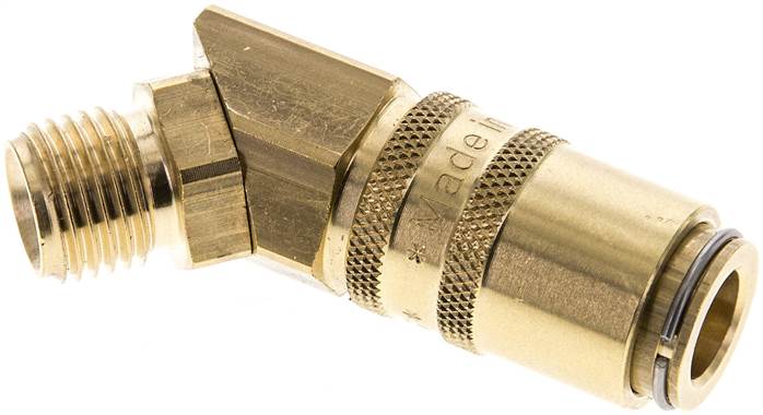 Connection, valve, valve body and unlocking sleeve: Brass or 1.4305, spring, circlip and locking balls: Stainless steel, seals: FKM (PTFE coated)