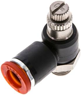 One-directional flow control valves restrict the flow in one direction, while the flow in the other direction is unrestricted. Throttle valves, on the other hand, restrict the flow in both directions according to the setting of the throttle screw. Standard form are the throttle check valves "exhaust regulating". If these are screwed into a cylinder, for example, they enable smooth running without slip-stick effect. Throttle check valves are used in the special form "supply air regulating" for cylinders with a small volume (small diameter/small stroke).
