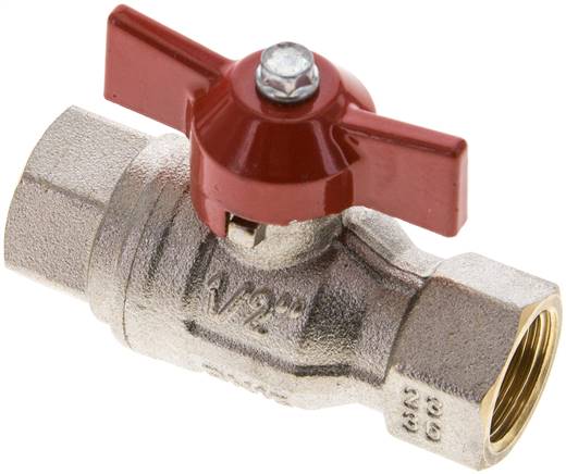 Körper: Messing vernickelt, Kugel: Messing hartverchromt, Dichtung: PTFE / NBR