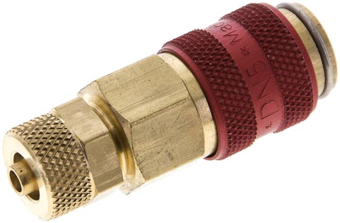Körper aus 1.4404 -ES4A, verwendbar für Stecker beidseitig absperrend -BA, rote Schiebehülse -RO, grüne Schiebehülse -GR, blaue Schiebehülse -BL, schwarze Schiebehülse -SCH