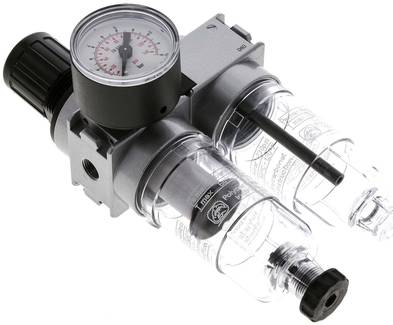Reversible filter regulator with attached lubricator (model series 0 with micro-mist lubricator)