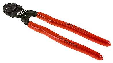Aus Chrom-Vanadium-Hochleistungsstahl geschmiedeter Bolzenschneider mit hoher Schneidleistung. Durch die neuartige Gelenkkonstruktion und die induktiv gehärteten Schneiden (ca. 64 HRC) ist der Kraftaufwand gegenüber eines Kraft-Seitenschneiders um ca. 60% reduziert.