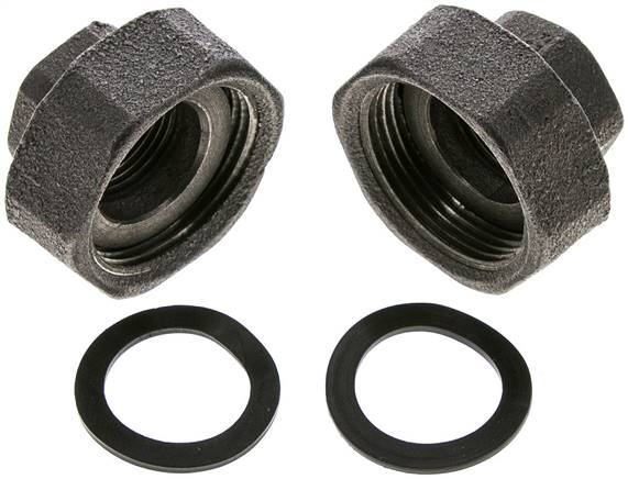 Pumpenverschraubungsset G 1-1/4"/Rp 3/4", Temperguss, schwarz