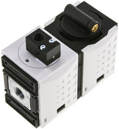 The machines are allowed to breathe gradually via an orifice. Once the pressure attains a value of approx. 50% of the input pressure and the cylinders have gradually moved into their basic settings, the start-up valve switches over to maximum throughway. The speed of the pressure build-up can be controlled using an adjustment screw. It is turned on via a 3/2-way valve.