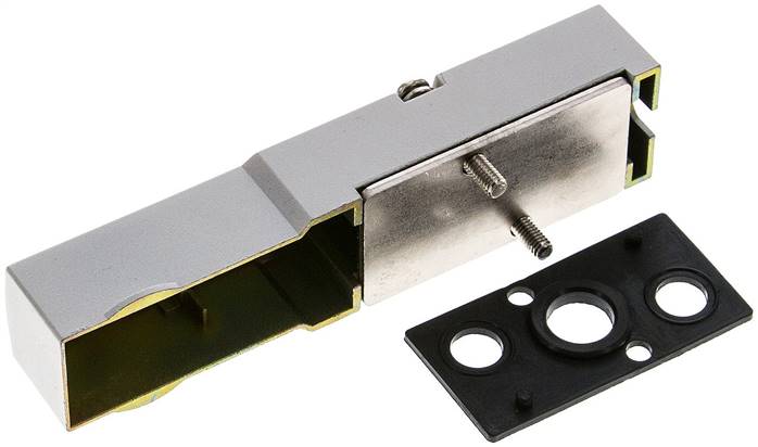 1. Terminalbox mittels Schwalbenschwanzführung auf die Mehrfachanschlussplatte aufschieben. 2. Ventile aufstecken (Ventile mit zwei Spulen werden durch MSF...-JC an der zweiten Spule angeschlossen) und verschrauben. 3. Bei möglichen Vibrationen verwenden Sie bitte zusätzliche Befestigungsplatten Typ MCS...-CP um die Spulen fest mit der Terminalbox zu verbinden.