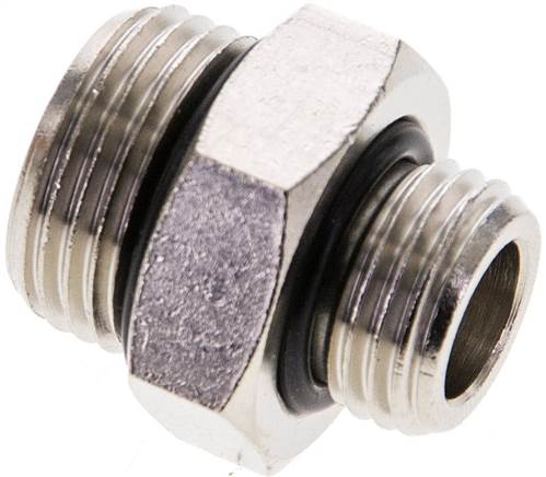 Doppelnippel G 3/8"-G 1/4", Messing vernickelt (Elastomerdichtung)