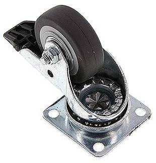 Simple castor design for internal use on smooth floors. Sheet steel housing, galvanised-chromated. Wheels with plastic rim and thermoplastic rubber tyre, Grey
