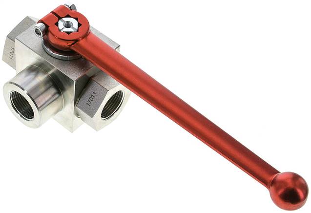 NPT závit -NPT, zahnutá rukojet (namísto rovné rukojeti) -GK, tlakování ze všech 3 stran (PN 400, >= G 1/2": PN 350), pouzdro brunováno, zahnutá rukojet -D3